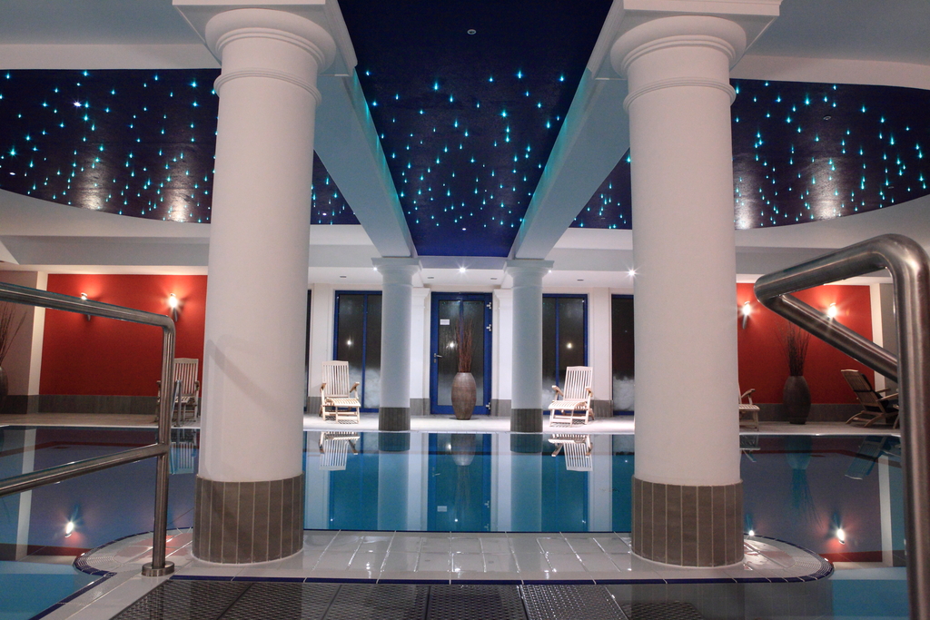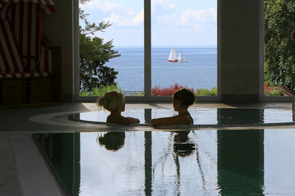 Tauchen Sie in unserem großzügigen Süßwasserpool oder in die heilende Kraft der Thermal-Sole-Bäder aus eigener Quelle des „Luisenbrunnens“ ein. Umgeben von maritim gestalteten Wänden und großen Fenstern genießen Sie hier auch an grauen Tagen lichtdurchflutete Stunden voller Entspannung.